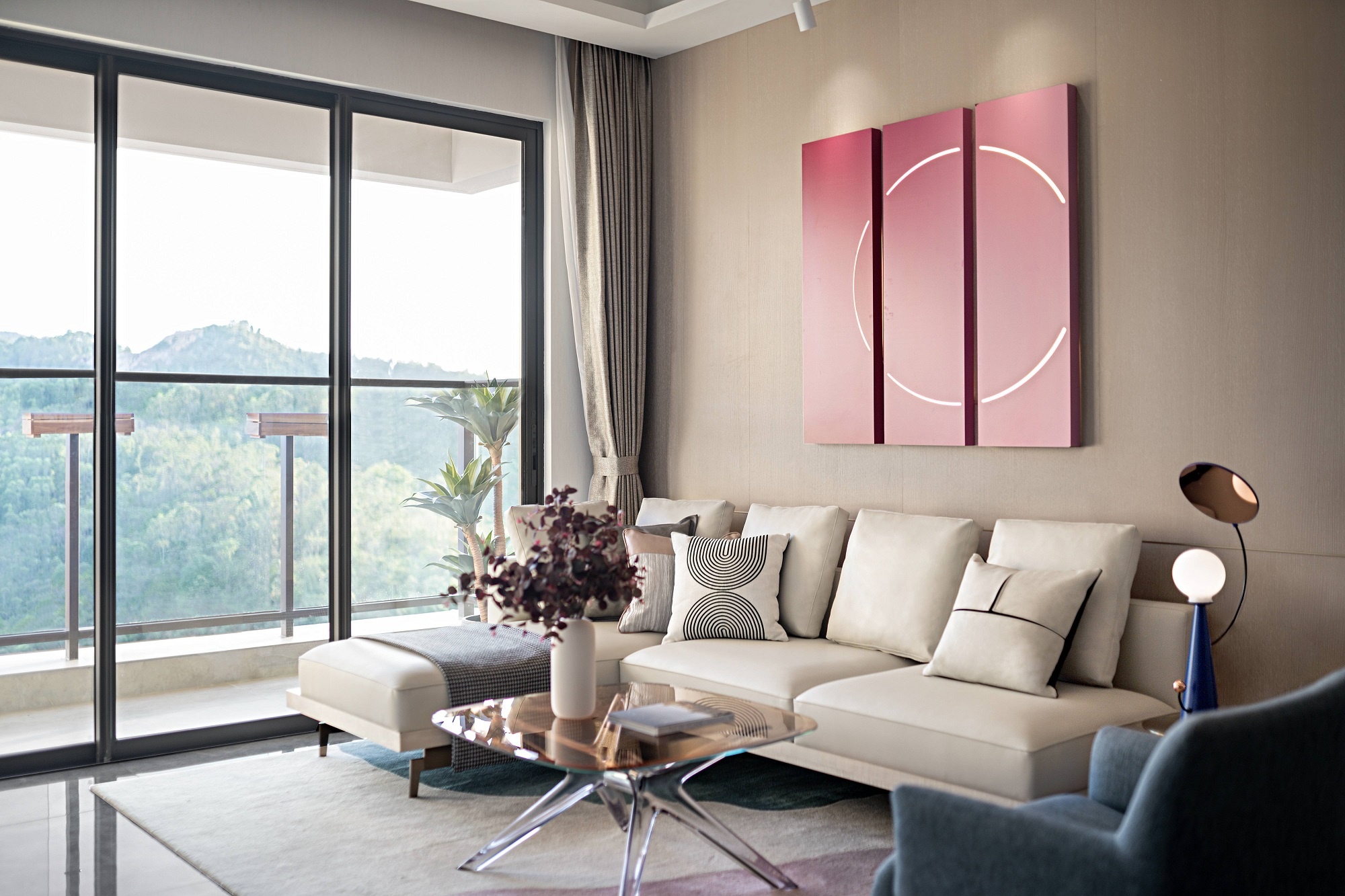 每一个慢下来倒追时间的人,松弛慵懒是生活写给他的小情歌。简约的沙发作为客厅的视觉枢纽,搭配着桌上那一束干花,仿佛蕴含了永恒的灵气。