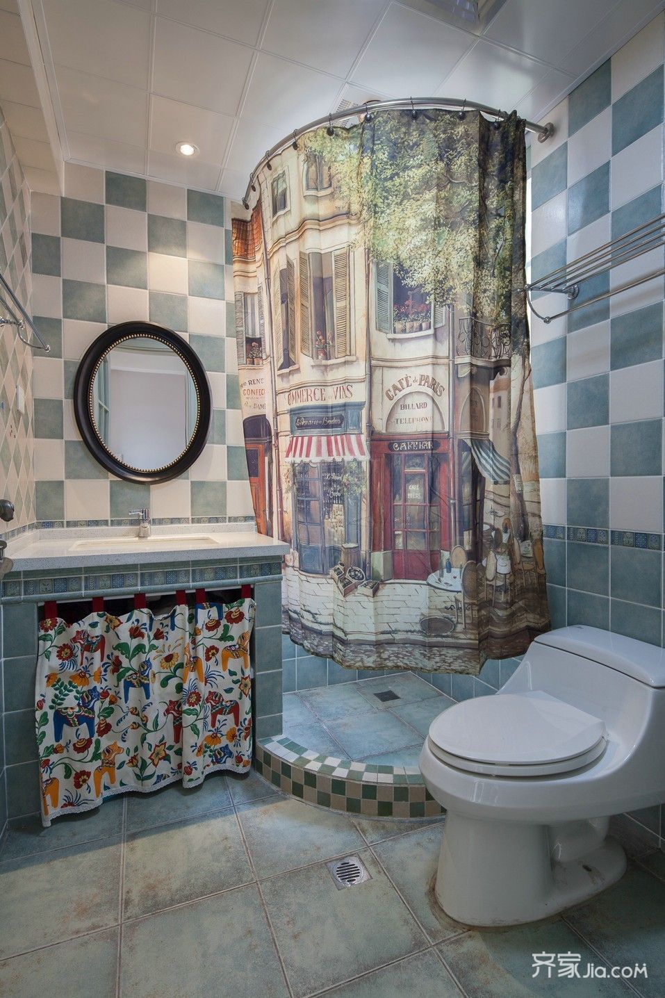 台澎是现场定制的,砖是加工的。铺贴方式采用一隔一的方式贴合,让空间不显的单调。