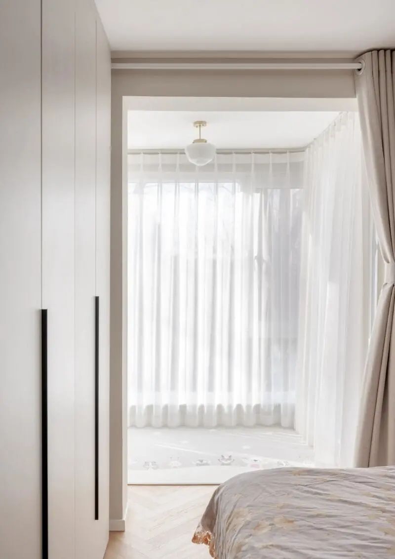 来到主卧,硬装处理同样很简单,只给墙面做了个跳色处理,看起来既温馨又治愈。同时,低饱和度的软装选择,也再一次强化了空间的氛围感。
