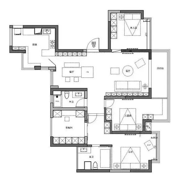 房子的各个功能区相对独立,动线清晰顺畅,转角吧台,让屋主吃饭时也能远眺湖景,原客卧改为衣帽间,与主卧、主卧,合为一个大套间,带来更好的生活体验。