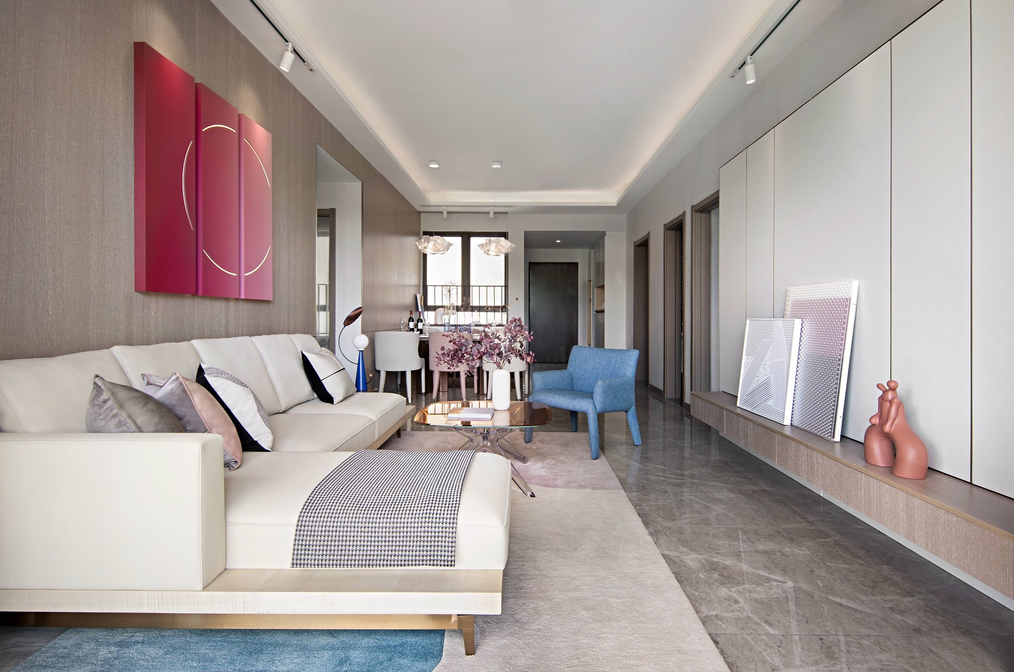 每一个慢下来倒追时间的人,松弛慵懒是生活写给他的小情歌。简约的沙发作为客厅的视觉枢纽,搭配着桌上那一束干花,仿佛蕴含了永恒的灵气。