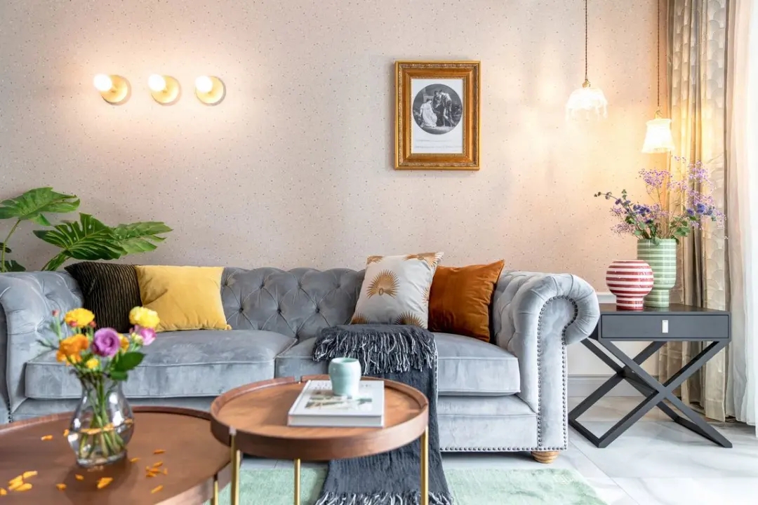 90平米的刚需性房屋中,整体空间以现代风格的设计搭配,在空间内加入大量色彩缤纷的设计元素,混搭出一种华丽高级的空间感,在精致浪漫的细节元素搭配之下,也营造出了一种高级优雅的空间体验。