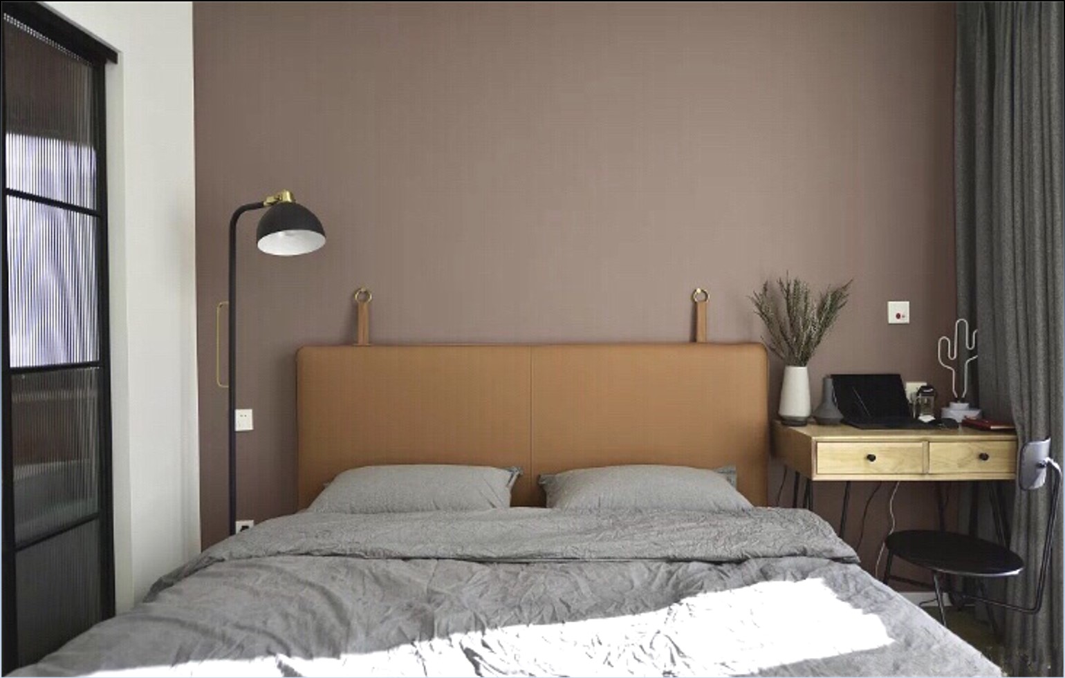 主卧背景墙以脏粉色为主,时尚且不失温馨。以色彩和家具合理的摆放满足使用要求,灯光的点缀把每件物品都照射得更宜温馨特别,主卧隔断墙采用长虹玻璃隔断,这样不仅解决了隐私问题,也把采光利用了最大化。