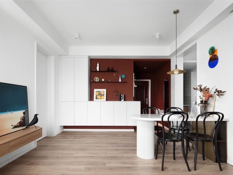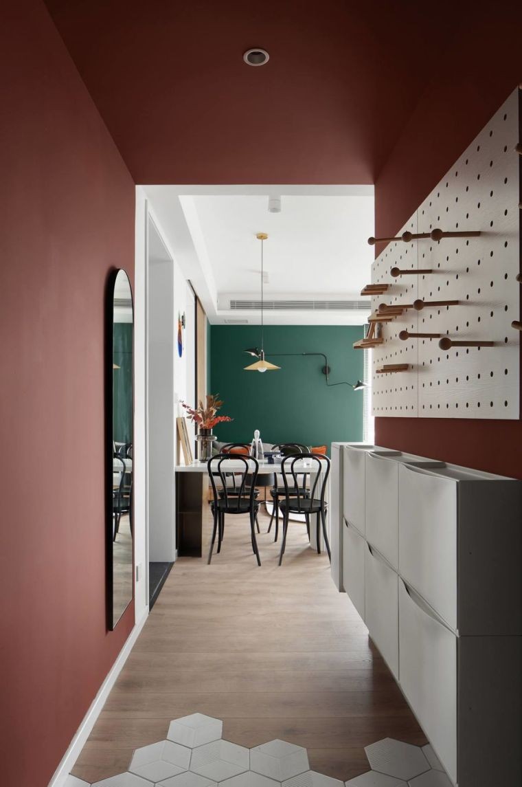 玄关红色是热情的颜色低饱和度红为整个空间注入质感的活力