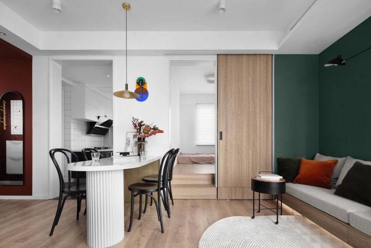 将原始封闭式厨房转向及敞开,重新设定公领域的动线,规划出流畅的使用空间