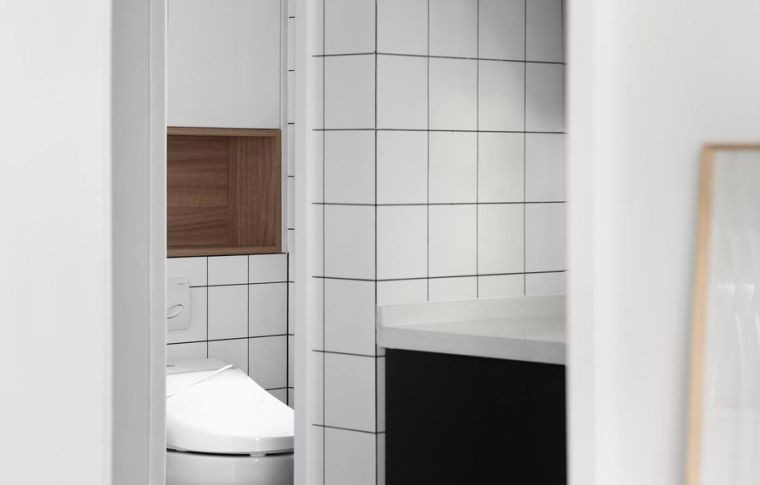 入户的角度悬空鞋柜和洞洞板简单要素满足三口之家的收纳需求。