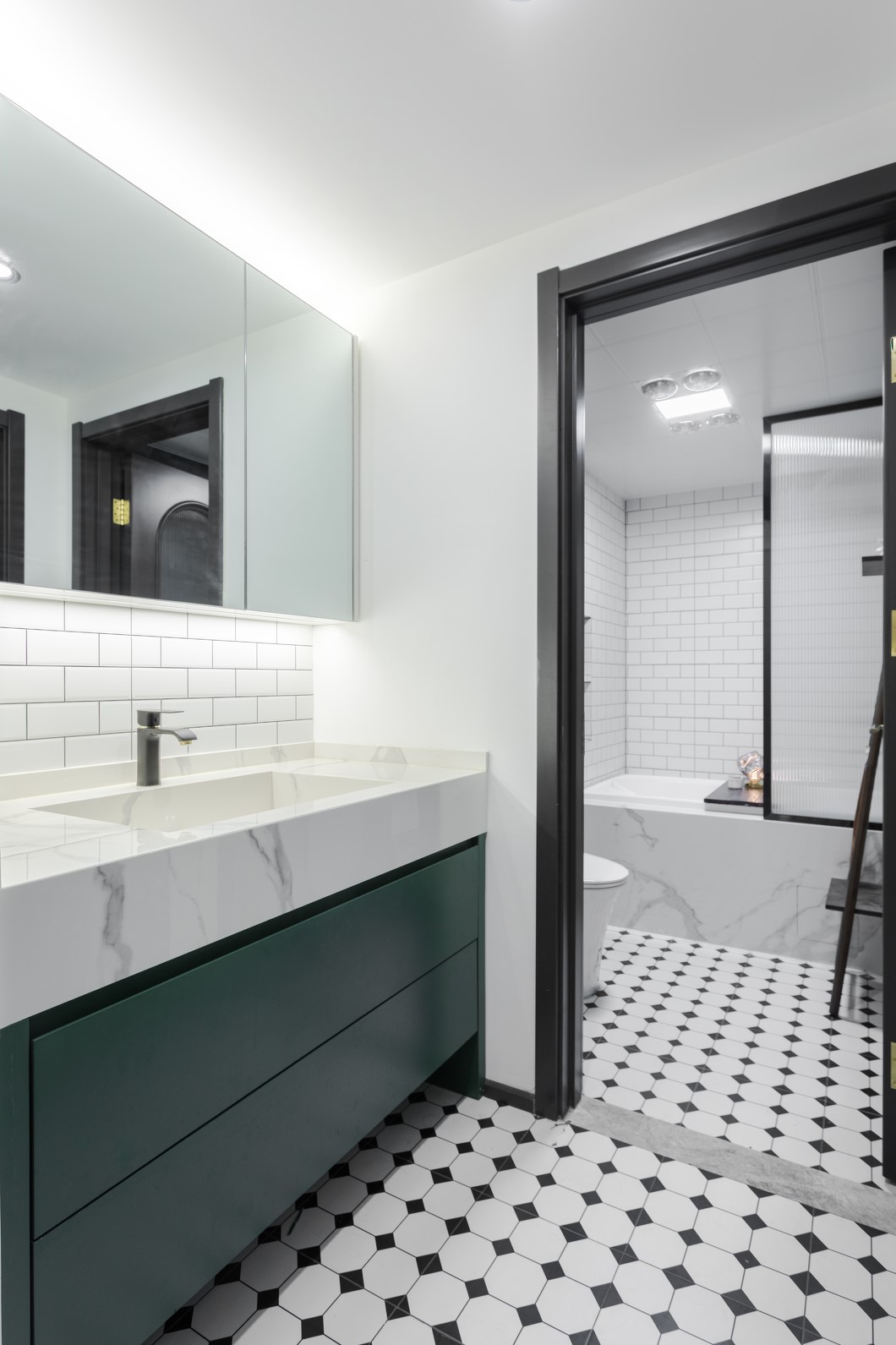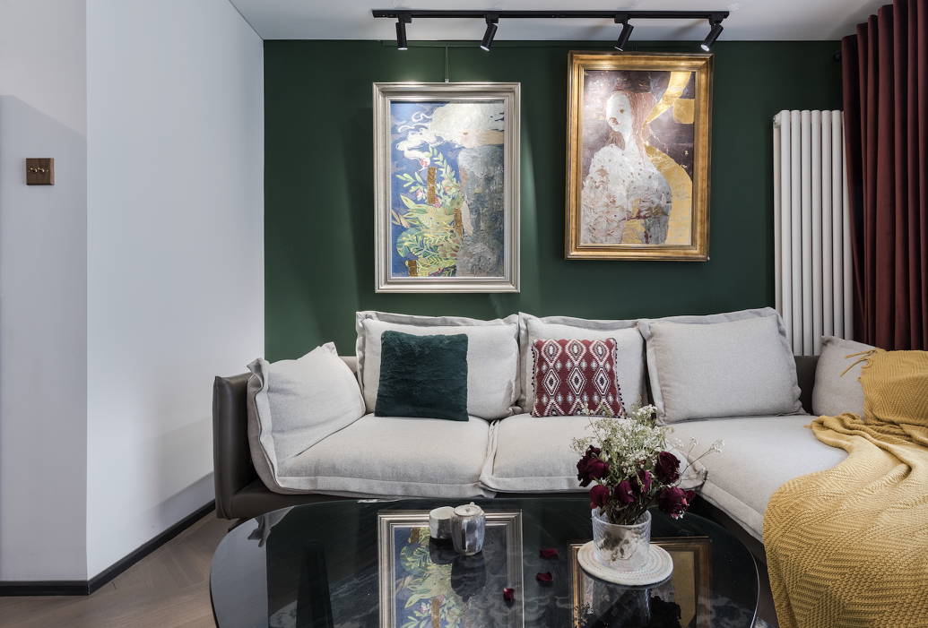 文艺的墨绿色与温柔的奶白色相得益彰,勾勒出一个浪漫空间。绿色在白色的映衬下反而一股自持的美丽,摆脱平庸日常的独特韵味,“优雅”的格调得以升华,赋予空间高贵、优雅的温情体验。