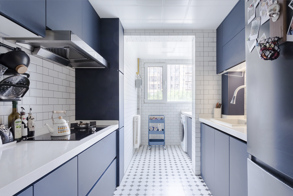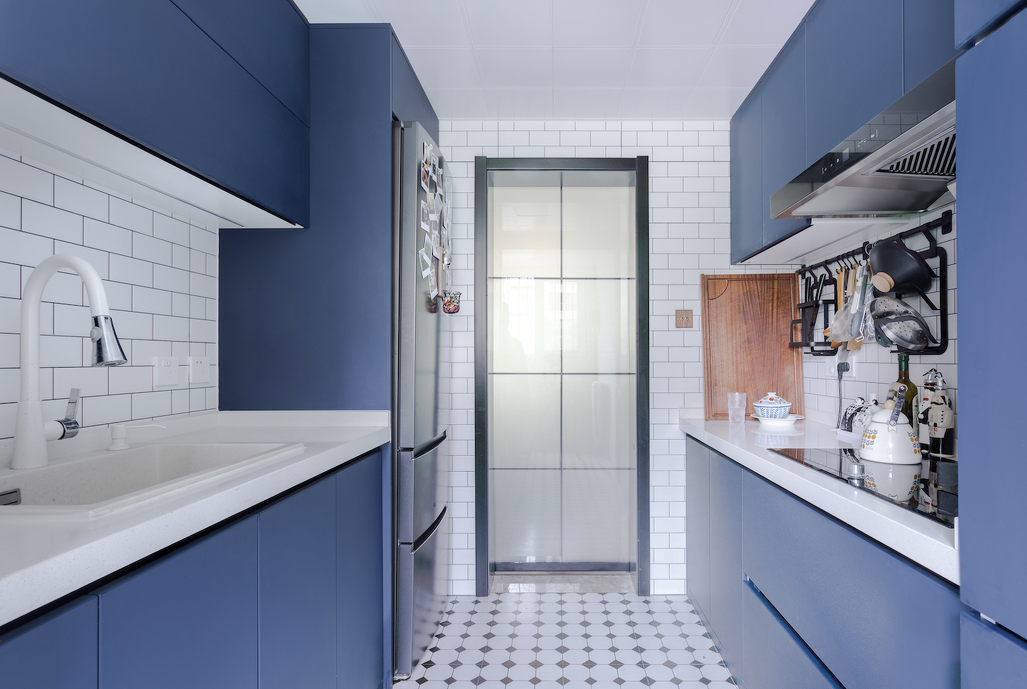 一目了然的布局塑造出阔绰的视觉尺度,舒适的空间被最大化利用。克莱因蓝的主色调搭配小白砖,清爽干净,符合当下年轻人的审美要求。每一件餐具都是精心挑选,食物在锅具中沸腾,味蕾里藏着记忆,厨房中蒸腾着烟火,这些不起眼的细节,构成我们对家的无限眷恋。
