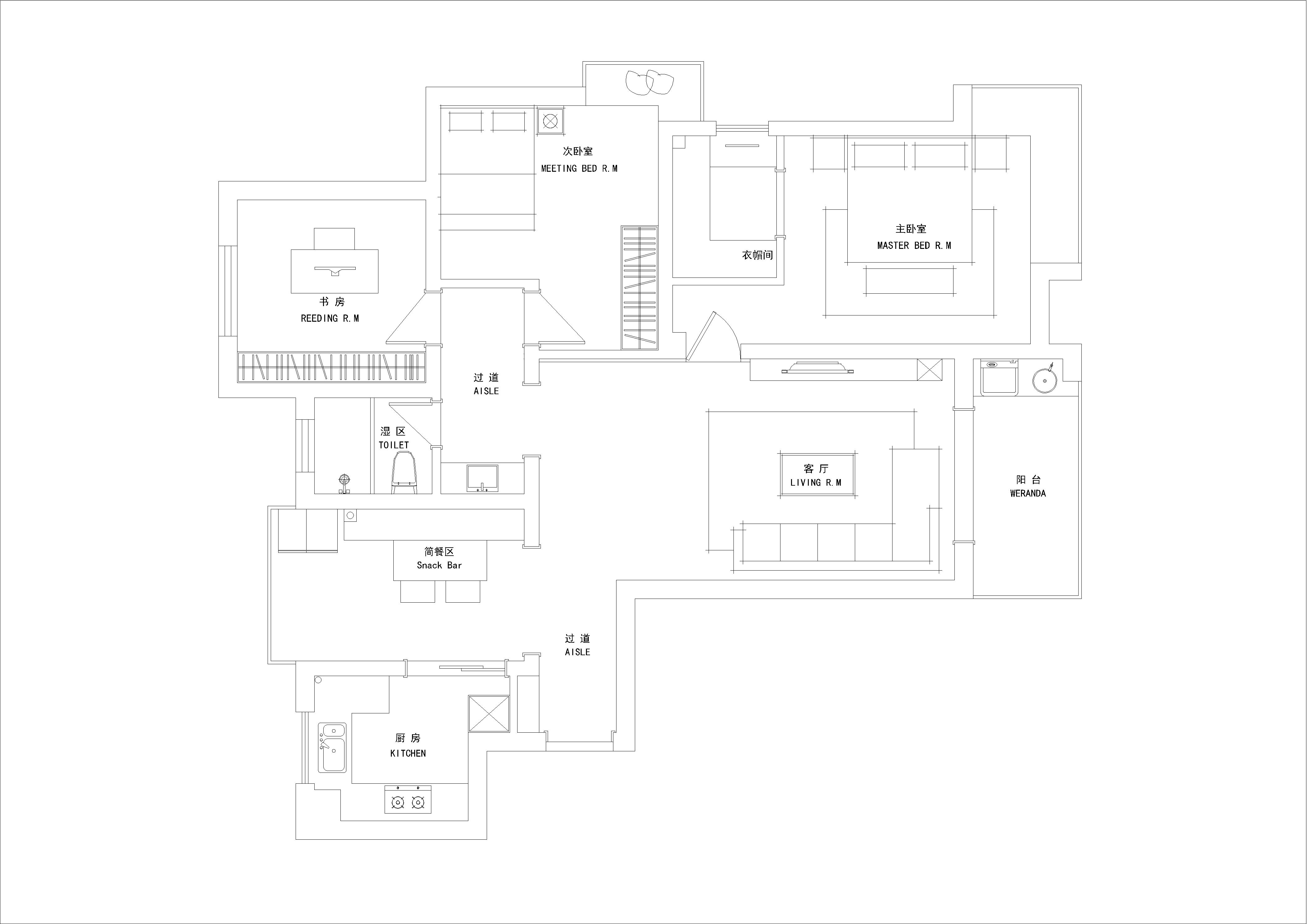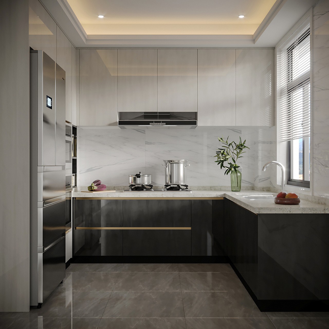 开放式厨房将元、色彩、照明简化到最少,提高质感要求