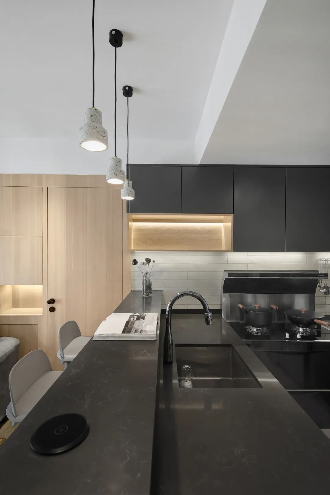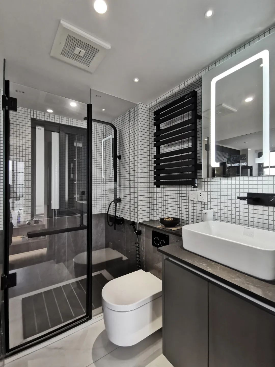 卫生间区域整洁雅致,黑白色瓷砖相互搭配,营造简约氛围。