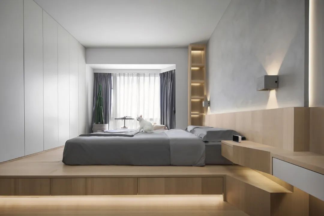 卧室空间整体的地台设计,保证功能实用,还为空间增添些许趣味性。