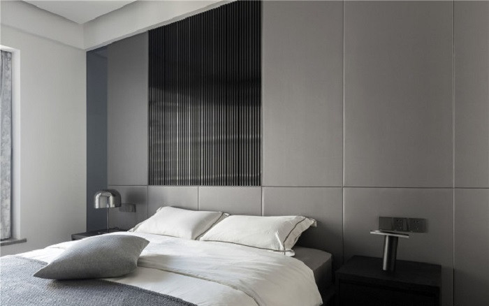 主卧的空间是干净温暖的, “暖”并不是在色彩上的体现, 而是希望通过材质的运用和生活方式的结合, 从触觉的舒适来提升温馨感。